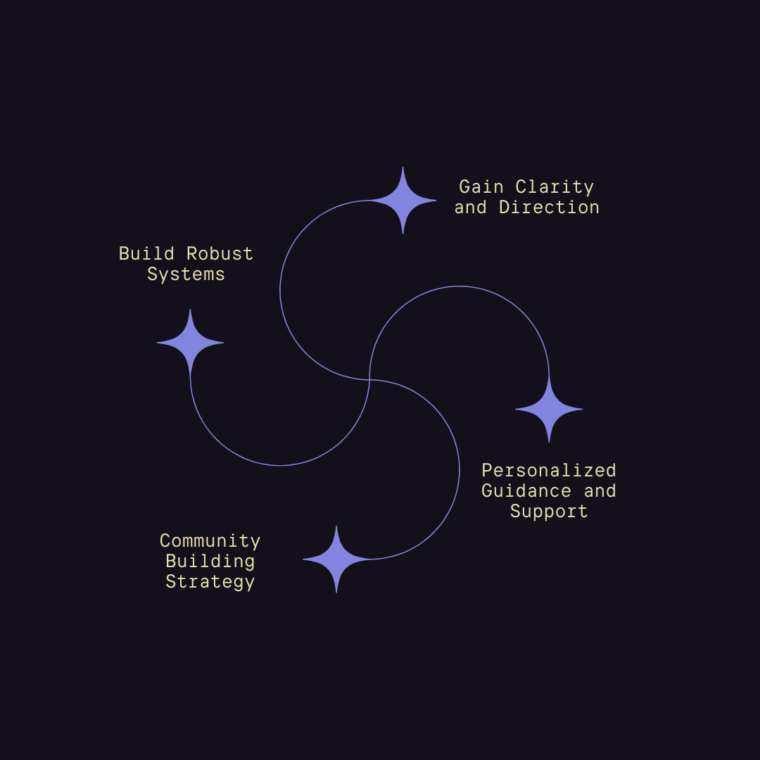 You’ll receive personalized, systems-oriented support informed by my experience building The Flying Sage from the ground up and running hundreds of IRL events and multiple ventures.